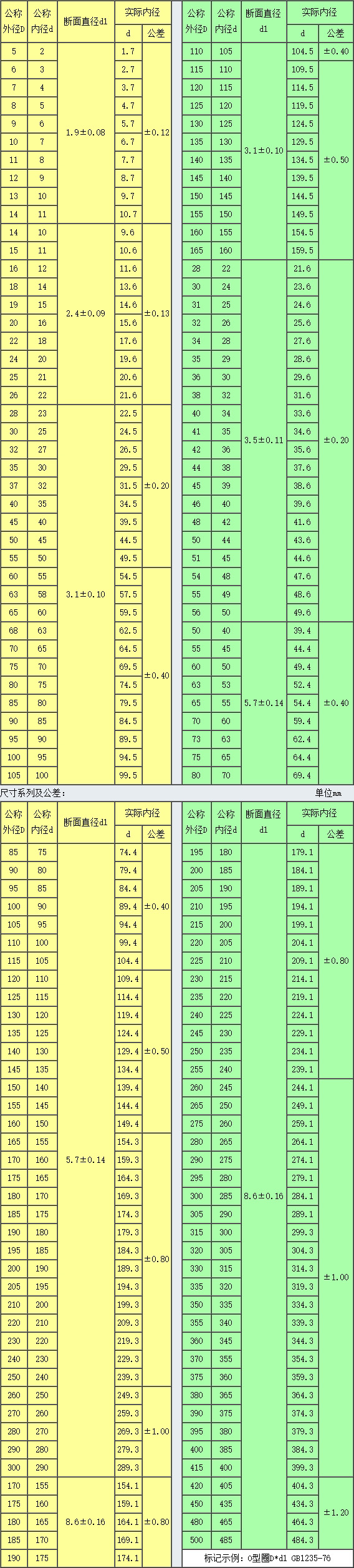 產品用途:本標準中O型橡膠密封圈適用于液壓氣動系統(tǒng)及各種機械設備和元器件,在規(guī)定的壓力,溫度以及不同的液體和氣體介質中,于靜止或運動狀態(tài)下起密封作用。 工作溫度:-40~+230℃ 工作壓力:<10~220Kg,f/cm 工作介質:空氣、水、油 產品硬度:40~85±2A 材質:丁腈橡膠、硅膠、氟膠、乙丙橡膠