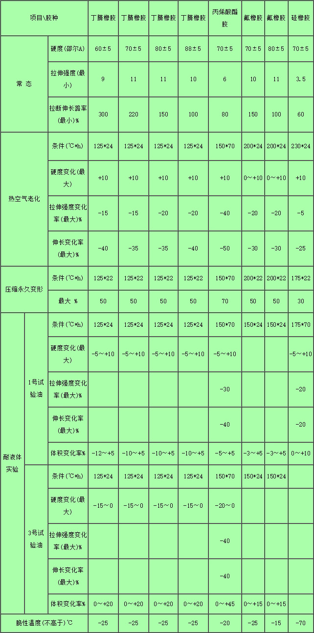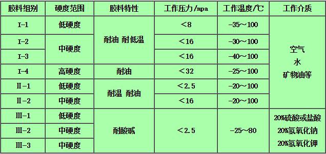 I組:耐油通用膠料Ⅱ組:耐油耐高溫膠料Ⅲ組:耐酸堿膠料